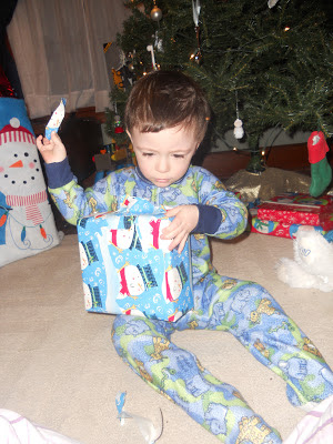 We then went sledding outside, it wasn't too cold and it had just snowed about another inch or so making it perfect for going fast. Oliver didn't know what to think at first when we went down but after a few times he was saying "more sled." Annaliese on the other hand was content to stand by her mom.
